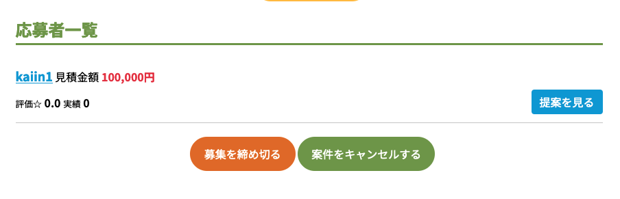 また、このページから提案を締め切ったり、案件(募集)をキャンセルすることが出来ます。